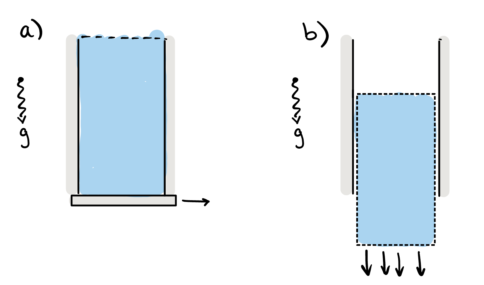 In the first experiment, we consider a tube filled with water, where the bottom is released at time \(t = 0\text{.}\) One can imagine that the entire column of fluid will fall under the effect of gravity.