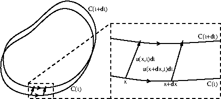 We therefore need to write \(\bu\) and \(\de\bx\) at time \(t+\de t\) on the curve \(C(t+\de t)\) to values at time \(t\) on the curve \(C(t)\text{:}\)